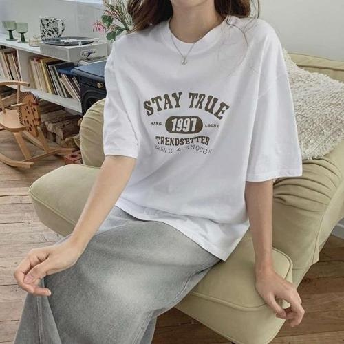 [다잇템][1+1] [다잇템] 여자 필기체 클래식 U넥 면원단 빅사이즈 반팔티_22154901_588872