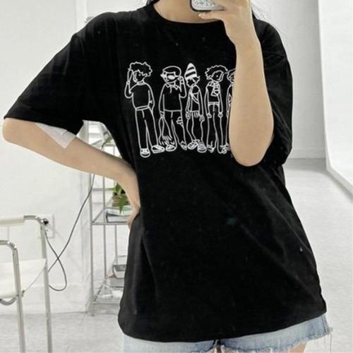 [다잇템]여성 워싱 롱 그런지 빅사이즈 면혼합 반팔티