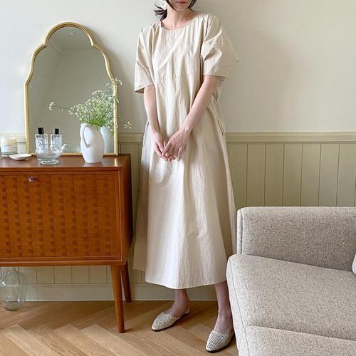 [옷자락] [시즌오프]3컬러 라운드넥 코튼 여름 반팔 롱 원피스_5