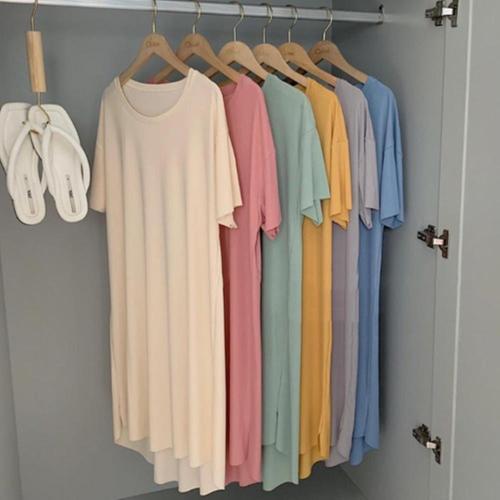 [옷자락] [시즌오프]6컬러 라운드넥 롱 베이직 쿨 반팔 원피스_5