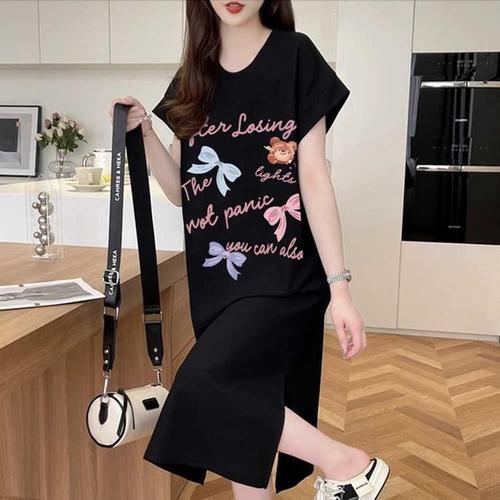 후암마켓 롱원피스 캐주얼 옆트임 레터링 루즈핏