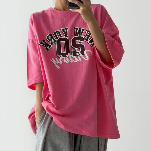 루즈핏 레터링 여성 여름 셔츠 티 셔츠 여자 반팔 루즈핏 여성 박스티