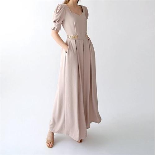 [바이어스]스퀘어넥 퍼프 반팔 와이드 팬츠 금장 점프수트 (9875681)