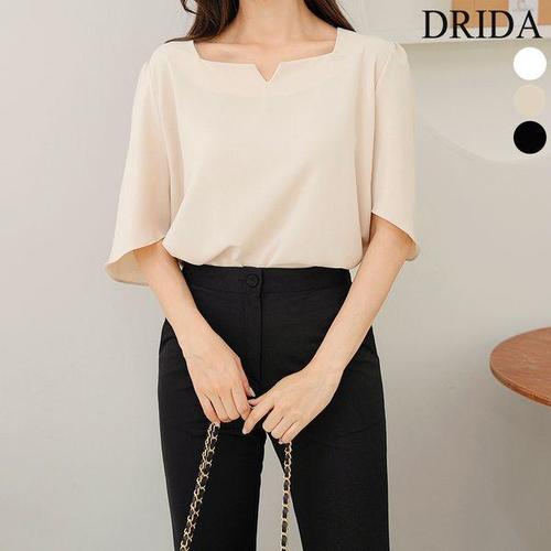 [드리다]여름 여자 정장 스퀘어넥 반팔 쉬폰 빅사이즈 블라우스 40-50대 중년여성 엄마옷 미시 하객 오피..