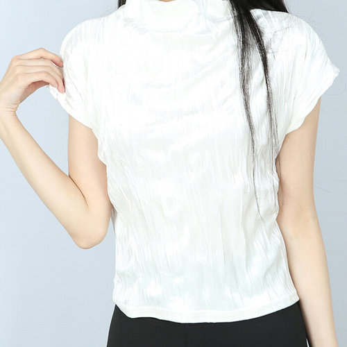 [파라노말샵]벨벳 하프넥 플리츠 주름 반팔 세미 크롭티 (파라노말