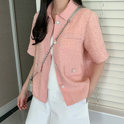 설세라 / 카라넥 여름 반팔 트위드 자켓