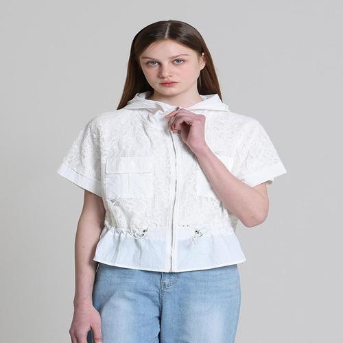 [아날도바시니][아날도바시니(ARNALDO BASSINI)] 후드 레이스배색 스트링 반팔집업점퍼 (택가격 118000원)