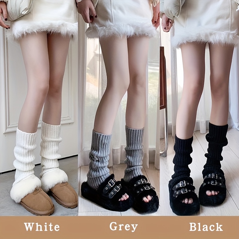 TEMU 여성용 겨울용 보온 레그 워머 1개 - 두꺼운 단열 OTK(오버 더 키니) 양말, 러플 커프스 & 탄성 밴드, 차가운 날씨를 위한 부드럽고 신축성 있는 원단, 손세탁/드라이 클리닝 - 단색 (블랙, 화이트, 그레이) - 드레스, 스커트에 적합