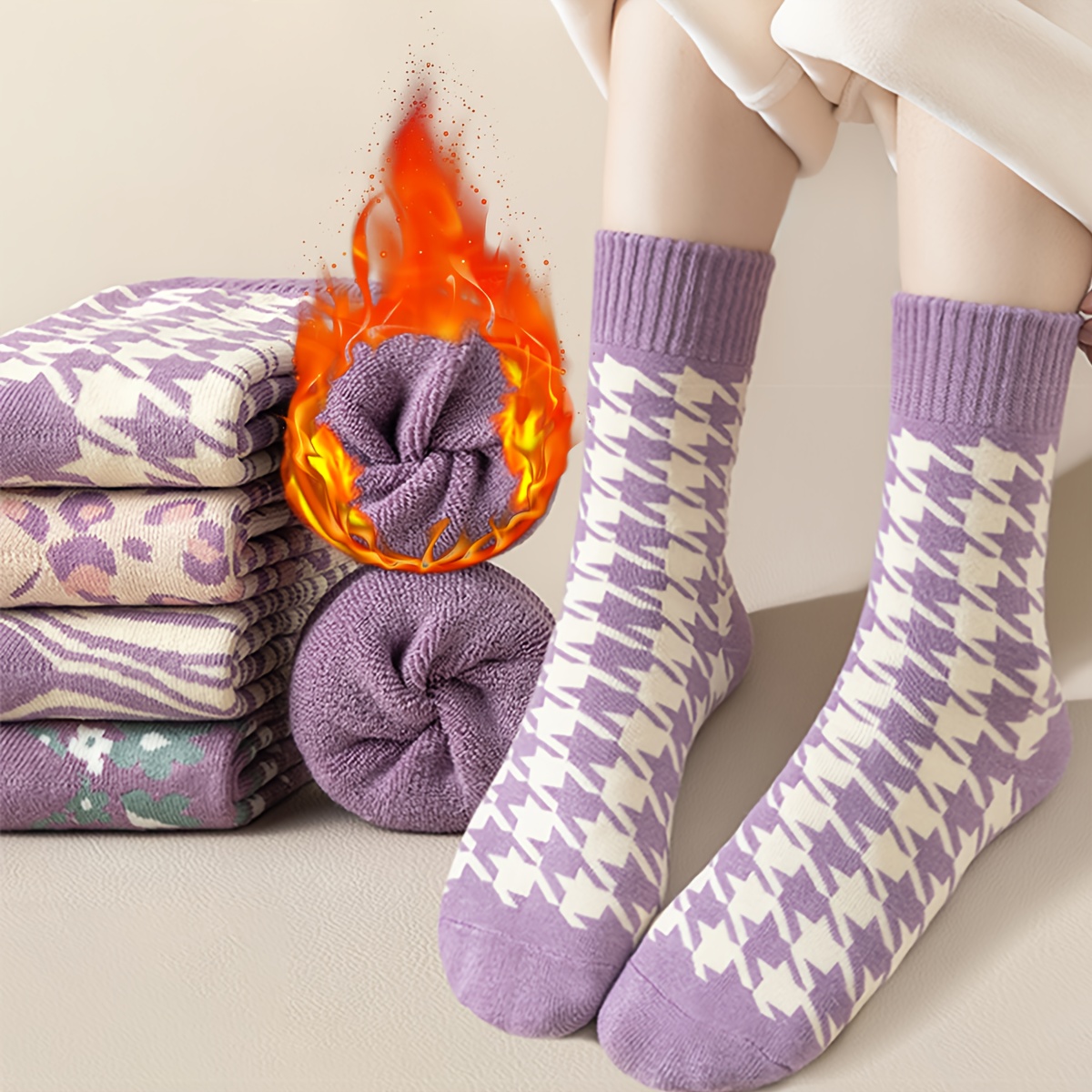 TEMU 4 쌍의 가을과 겨울 여성용 플러시 및 두꺼운 테리 양말, 중간 튜브 양말, 잠자기 양말, 바닥 양말, 편안하고 따뜻함, 귀여운 숲 스타일, 일상 착용에 매우 적합