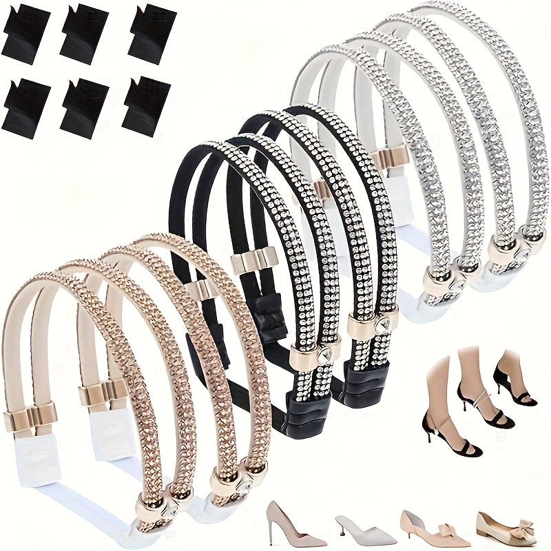 TEMU 여성용 신발끈 3켤레, 넉넉한 신발 및 하이힐 신발 액세서리에 적합, 조절 가능한 라인스톤 신발끈, 하이힐 및 샌들 호환, 블랙, 화이트 및 샴페인 색상으로 제공, 배터리 없음