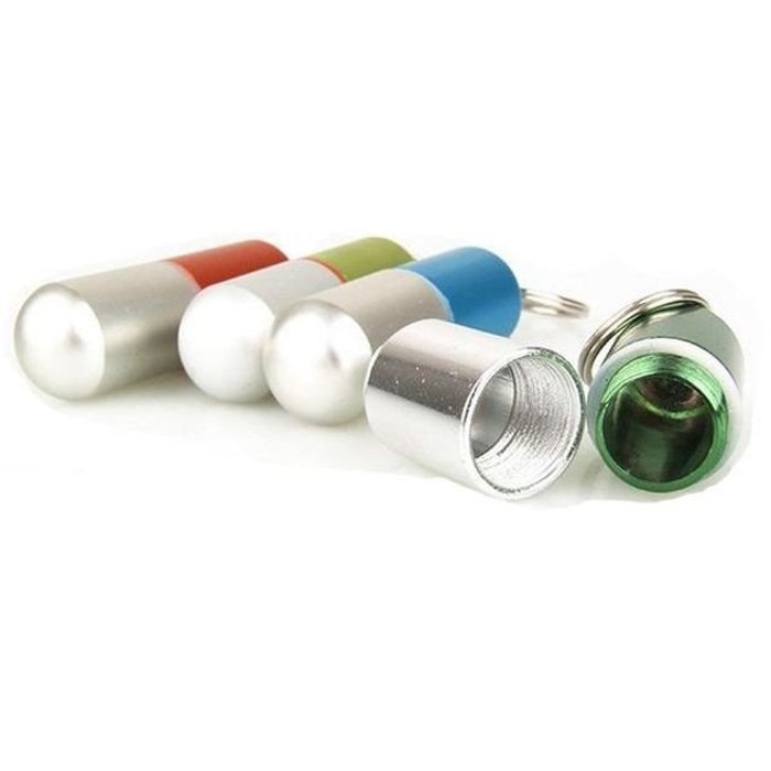 밀봉된 보관함, 플랫 헤드, 원형 합금 카트리지 및 비타민 피쉬 오일용 키체인이 포함된 알루미늄 방수 알약 상자 케이스