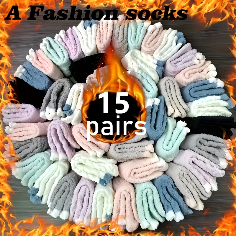 TEMU AHEAYUAN 여성용 코랄 안감 15켤레 보온 양말 - 겨울용 보온, 미끄럼 방지 실리콘 도트, 산후 관리 및 헬스용 양말, 추위에 민감한 발에 적합, 손세탁 전용, 선물용 박스 포함