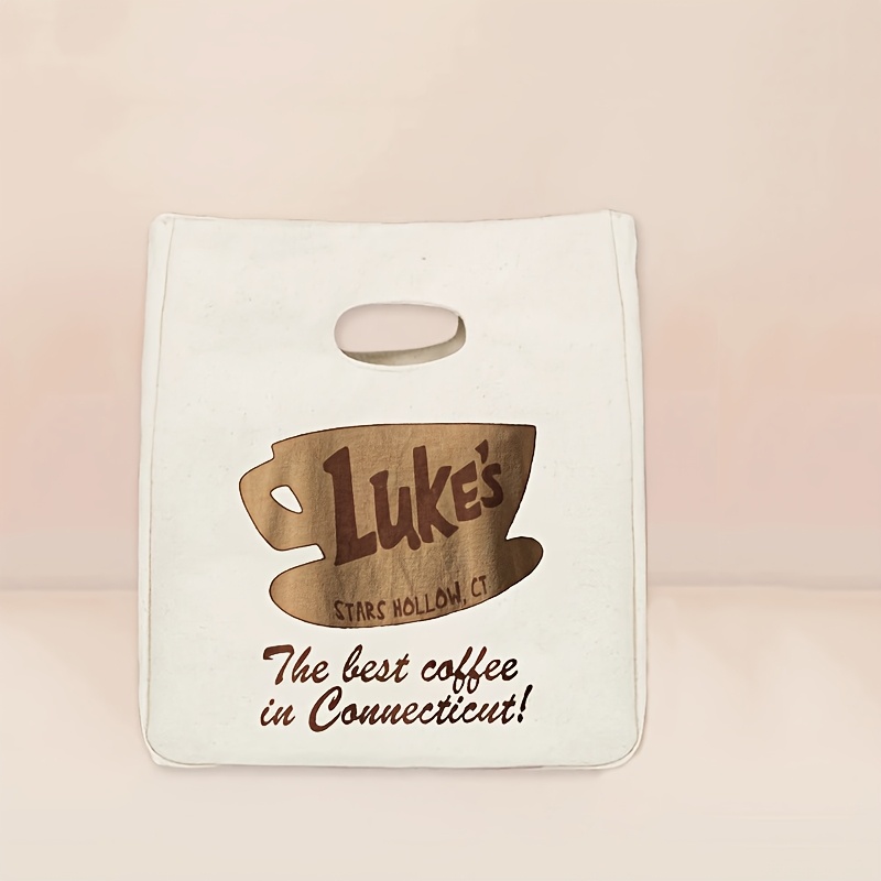 TEMU 1개 스타즈 할로우 루크의 커피 패턴 런치 쿨러백 휴대용 보온 캔버스 도시락 토트 보온 식품 보관백 선생님 선물 코네티컷 최고의 커피, 스타즈 할로우 선물, 비식품 접촉