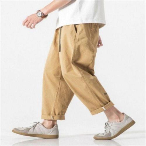 베이직 스타일 롤업 7부 밴딩 배기 남성 일자 바지