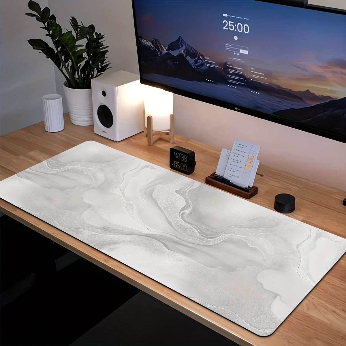 TEMU 대형 인조 대리석 흰색 및 회색 게이밍 마우스 패드 & 데스크 매트 - XL/XXL 확장형 미끄럼 방지 고무 베이스, 내구성 있는 워셔블 표면 (PC, 노트북, 사무실, 컴퓨터 책상에 적합) - 대리석 패턴 키보드 보호대, 게이머에게 이상적