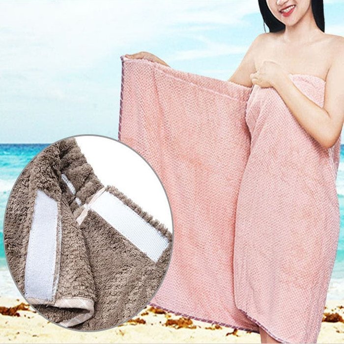 엄지척 흘러내림 X 가운 극세사 찍찍이 샤워 원피스 배스타올