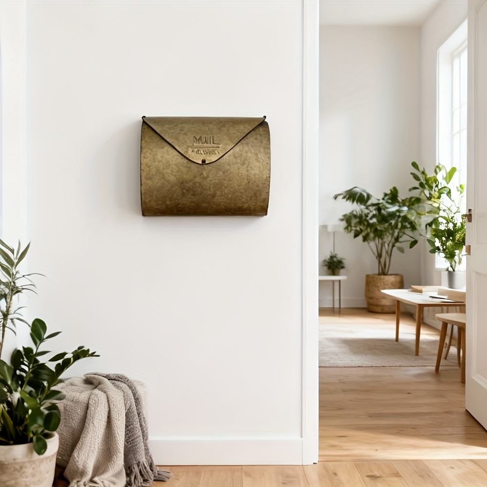 TEMU HANYIAL 아연 도금 벽걸이 우편함 - "MAIL" 엠보싱 디자인의 수직 봉투 스타일, 실외 사용을 위한 내구성 있는 금속 구조, 배경, 가정 또는 사무실에 적합, 실외 우편함 | 빈티지 미학 | 내구성 있는 금속 상자