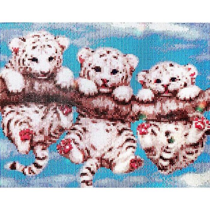 친절한탄씨 아기 백호 세마리 (패브릭) 보석십자수 30x40