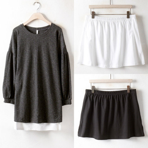 나야홍 / 빅사이즈 레이어드 미니 스커트 밴딩 베이직 속 치마