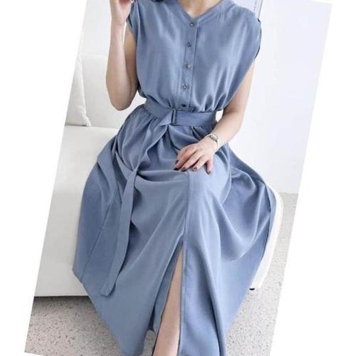 아이미마인 / 하바나 허리밴딩 셔츠카라 단추 여름 롱원피스 3컬러