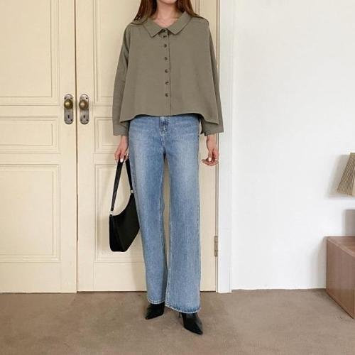 [다잇템][다잇템] 여자 통소매 버건디 망토 언발란스 박시핏 단추 셔츠_14690990_588872