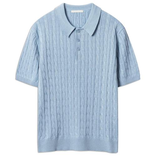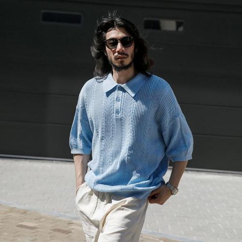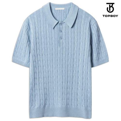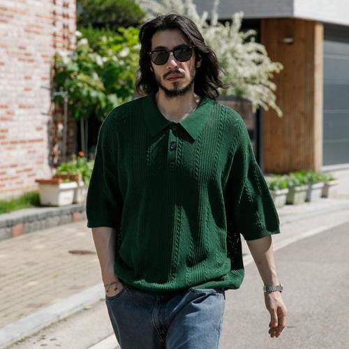 [피팅남]남자 페즈 여름 케이블 꽈배기 카라 반팔 니트