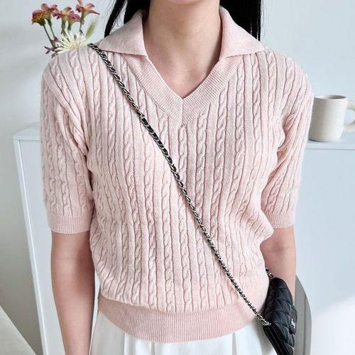 파스텔 케이블 반팔 니트 5color SL-1004507 WFKOCGW