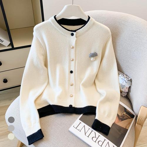 KARRA 배색버튼버섯가디건+브로치SET_A5W0850