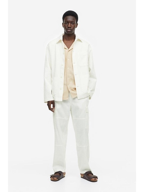 [에이치엔엠] Regular Fit 리넨 블렌드 카고 팬츠 화이트 1138849001