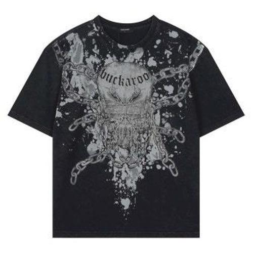 [버커루]남성 오버핏 스컬 프린트 반팔티셔츠_DG