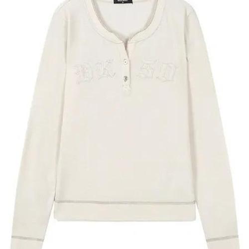 [버커루]여성 아플리케 헨리넥 긴팔 티셔츠_DG