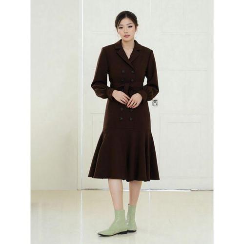 [엘바이엘]브라운 더블버튼 플레어 셔츠 원피스