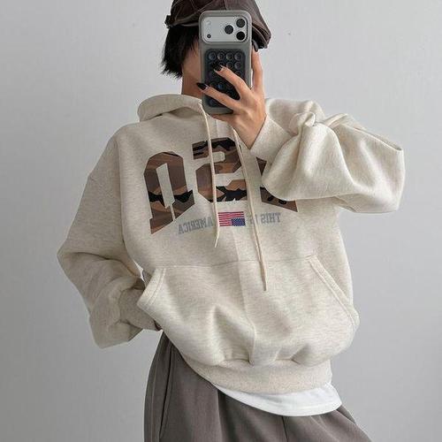 [다잇템_패션]여자 나염 후드맨투맨 카모 주머니 벌룬 티셔츠