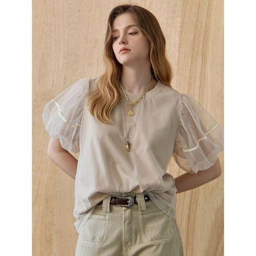 [마쟈]메쉬 레이어드 벌룬 소매 블라우스 티셔츠