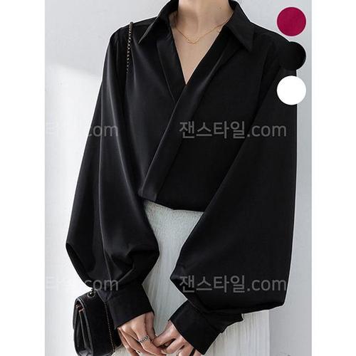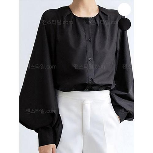 잰스타일 봄블라우스 블랙 퍼프 슈가 벌룬블라우스 WFLK7UY