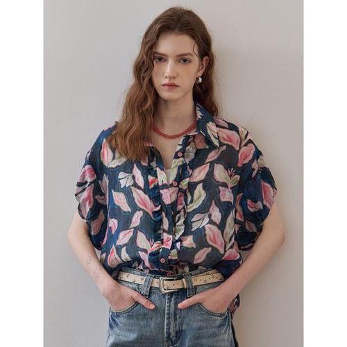 [마쟈]하와이안 플라워 프릴 벌룬소매 블라우스