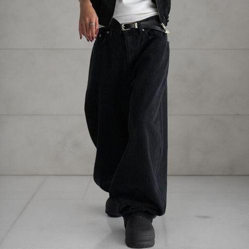 [옷자락]여자 스트라이프 워싱 로우라이즈 벌룬 와이드 청바지