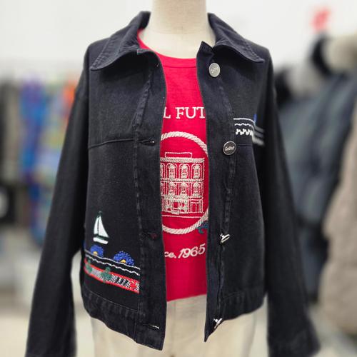 [베네통]돛단배 니트 블럭 데님 점퍼 BAJPA1611BK_IC