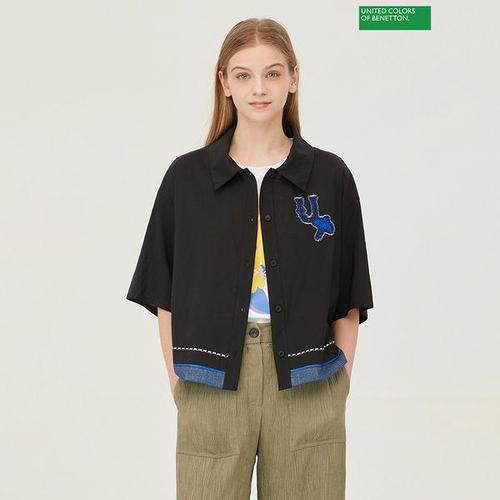 베네통/애플아울렛/레이온 혼방 소매자수 배색 셔츠형 블라우스/BABLA3531