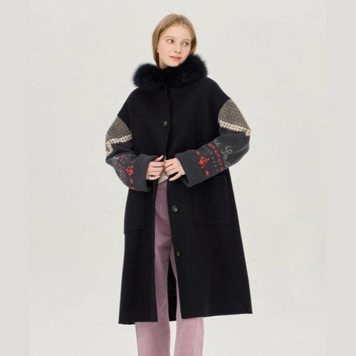 베네통/애플아울렛/포켓 배색 부클 후드 롱 코트/BACTA4461