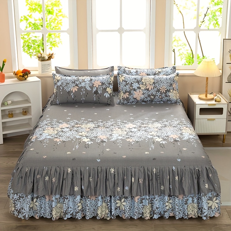 TEMU 싱글 침대 스커트 (베개 커버 제외), 편안하고 부드러운 미끄럼 방지, 먼지 방지 주름 가장자리 침대 스커트 보호 커버, 사계절용, 더블 및 싱글 침구, 침실 및 게스트룸에 적합