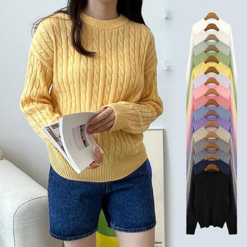 [기타브랜드]베로니카 라운드 꽈배기 캐시 니트 여성 기본 베이직 스웨터 티셔츠