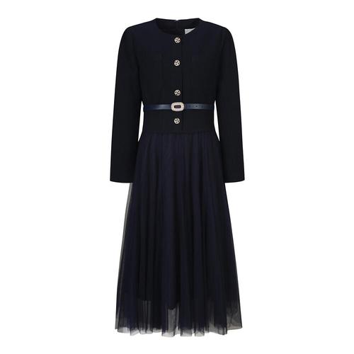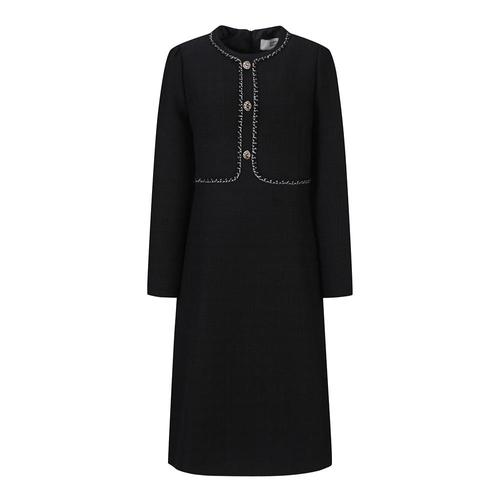 베스띠벨리 [신상 겨울 원피스 할인] 브레이드 포인트 트위드 롱 원피스 <정상가 459,000원> 검정 정장 겨울 원피스 트위드