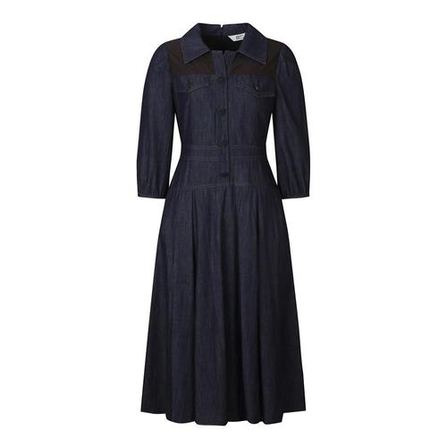 [베스띠벨리]배색 플리티드 카라 데님 원피스 BJOKH2514 H