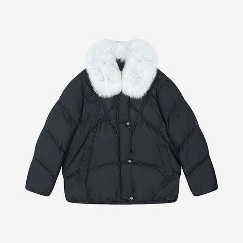 베스띠벨리 23겨울 여우털 후드 퀼팅 덕다운 점퍼2621BK