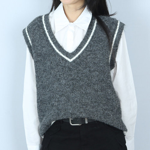 파라노말샵 / 3색 브이넥 라인 배색 루즈핏 니트 베스트 조끼 (파라