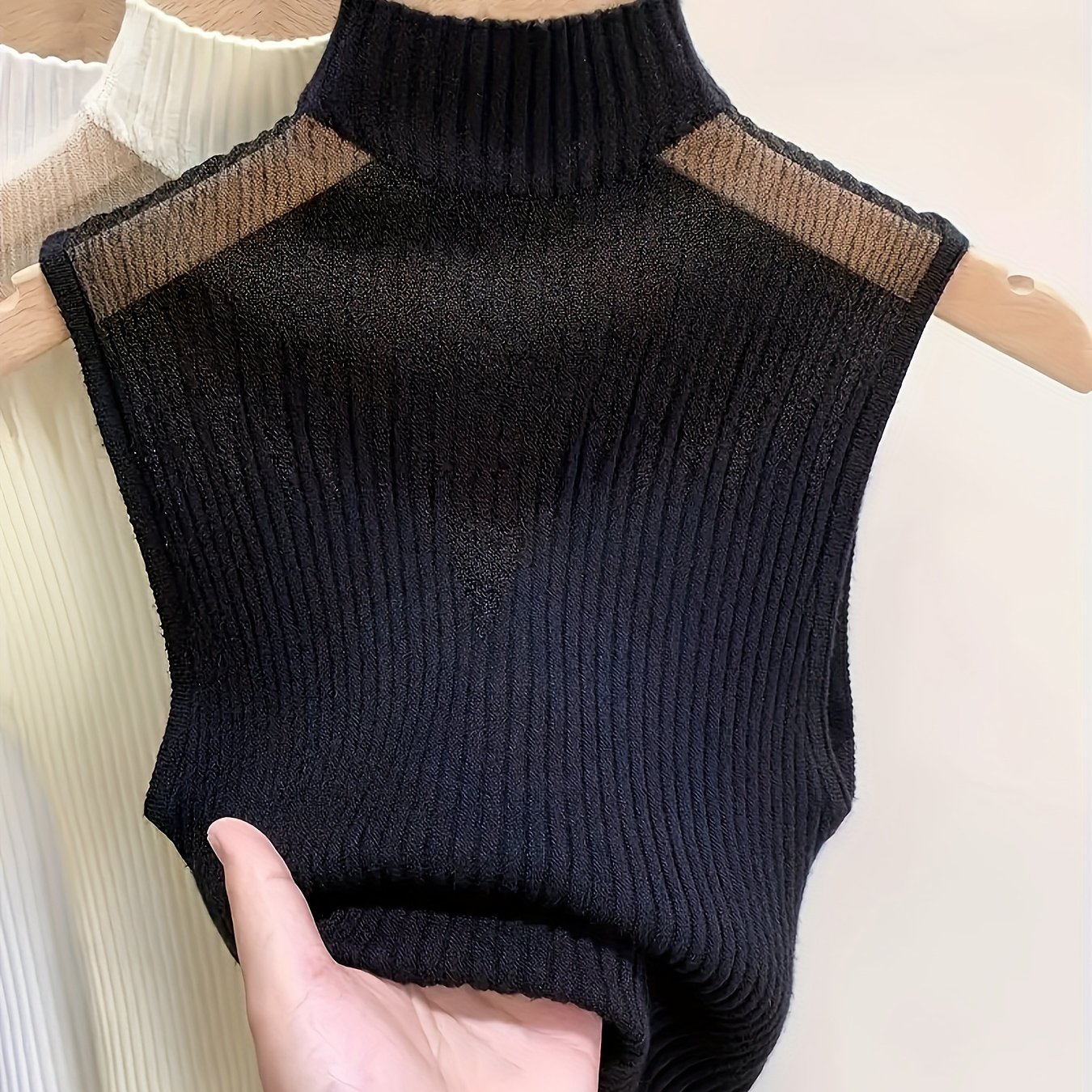 TEMU 여성용 넥라인 캐미솔 베스트, 여름 아우터웨어용, 봄/가을 이너 레이어링 베이스 레이어, 겨울용 하프 터틀넥 민소매 스웨터 탑