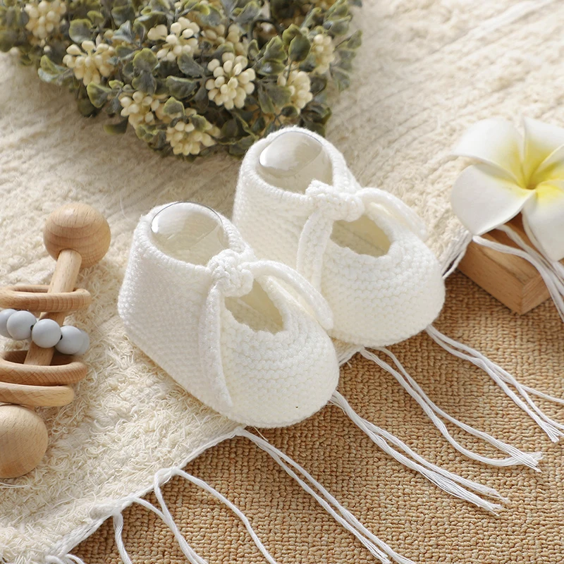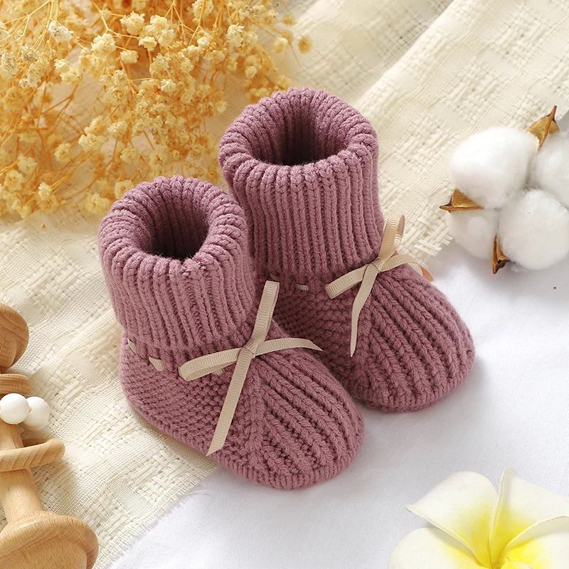 아기 신발 니트 신생아 소년 소녀 부츠 패션 솔리드 귀여운 활 유아 어린이 신발 0-18M 수제 따뜻한 옷 액세서리