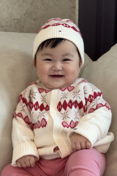 타미힐피거칠드런6 T42F7NWO110GT1 [베이비]페어아일가디건/비니세트