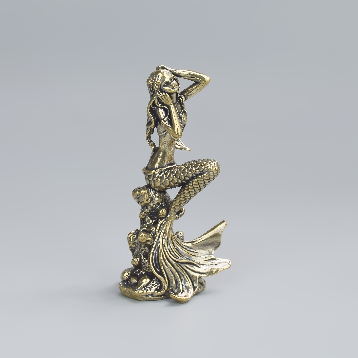 TEMU 1 단단한 황동 인어 조각상 | 우아한 머리카락과 꼬리가 있는 수제 금속 수집품, 정교한 스케일 디자인, 실내/외 홈 오피스 장식, 거실, 침실 책상 장식, 수족관 액센트에 이상적 - 발렌타인데이, 크리스마스에 완벽
